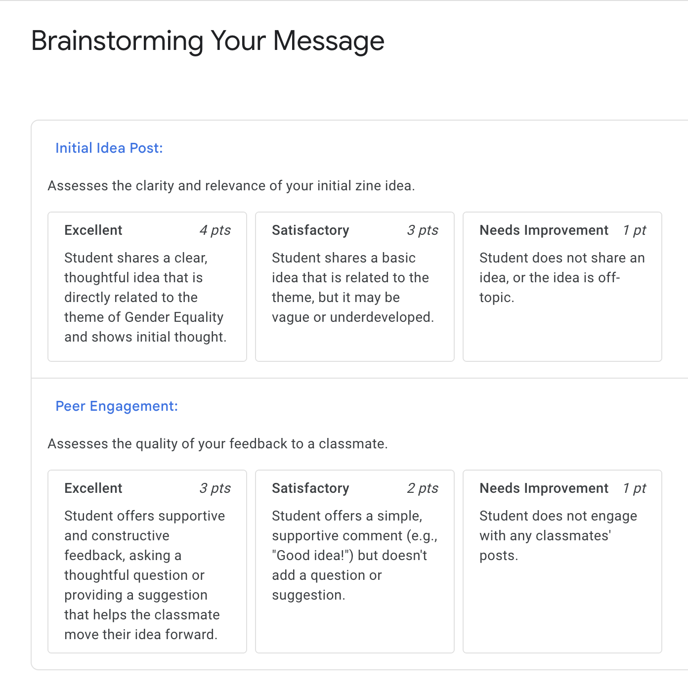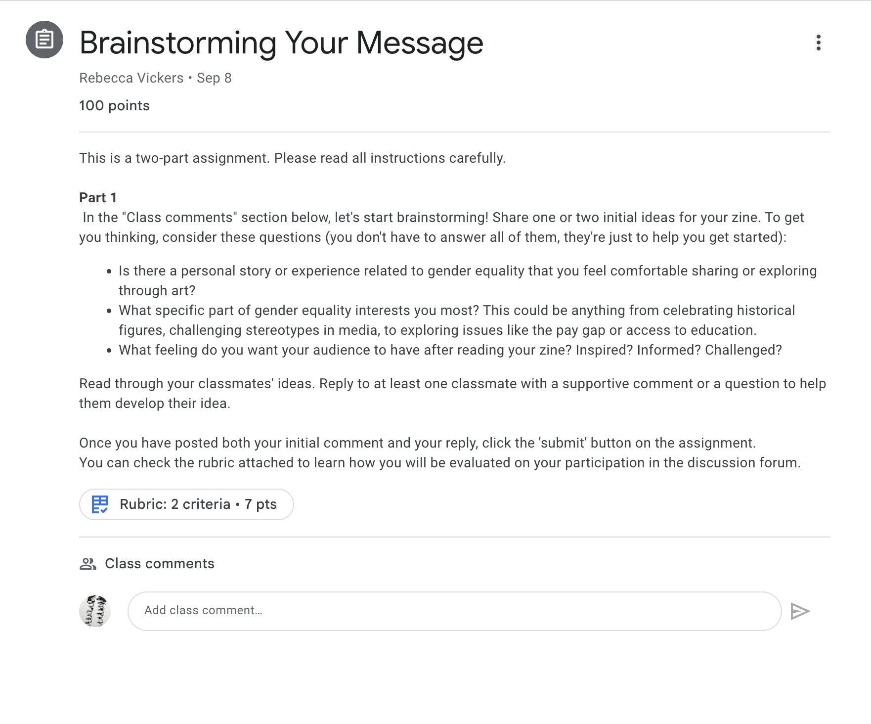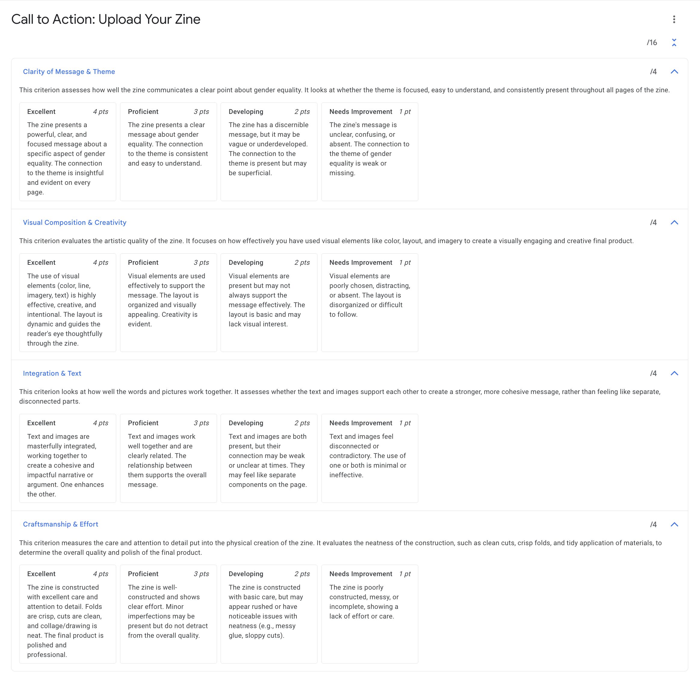 - Google Drive Integration: This is the most critical feature for my course. Students can easily create, manage, and submit their artwork and written components using Google Docs, Slides, and Sheets. Students can also use Google Drive folders or even Google Sites to build and share their digital portfolios.